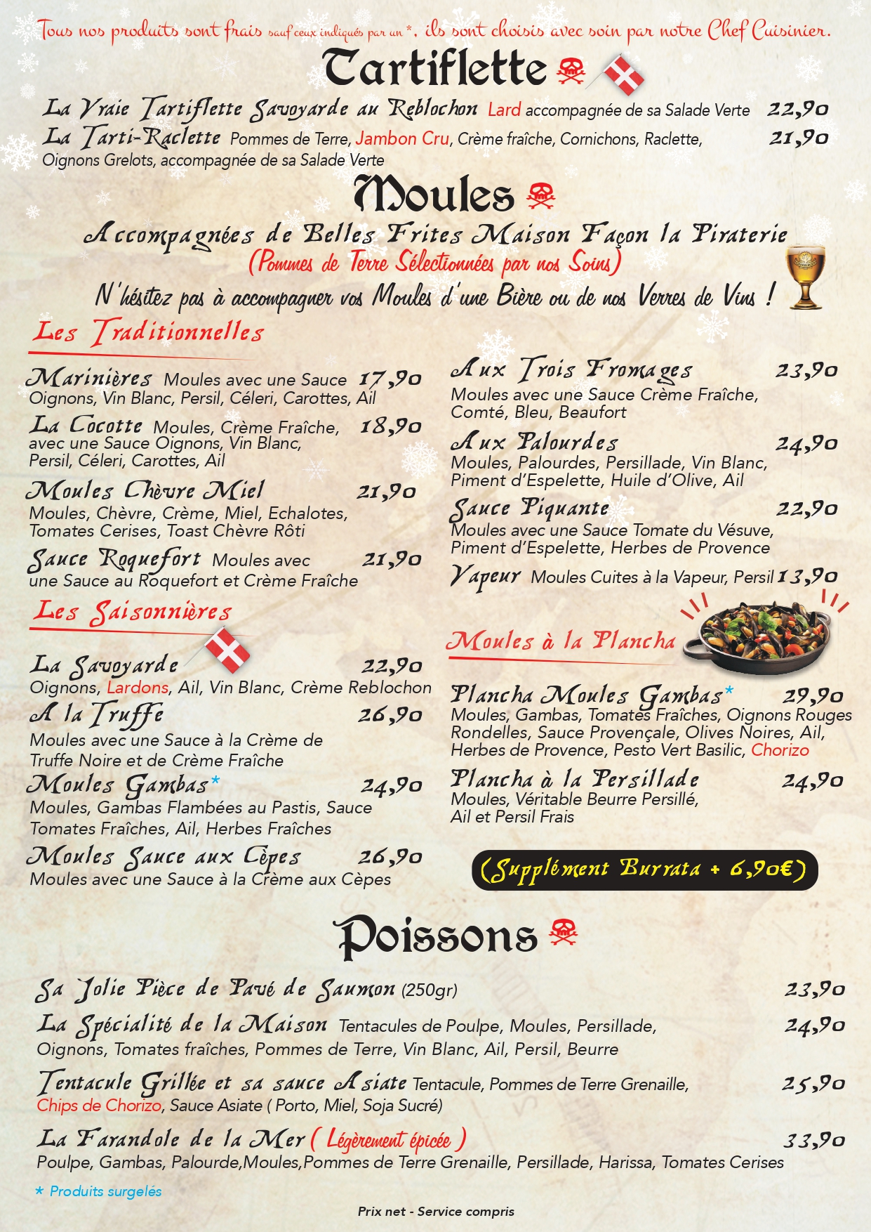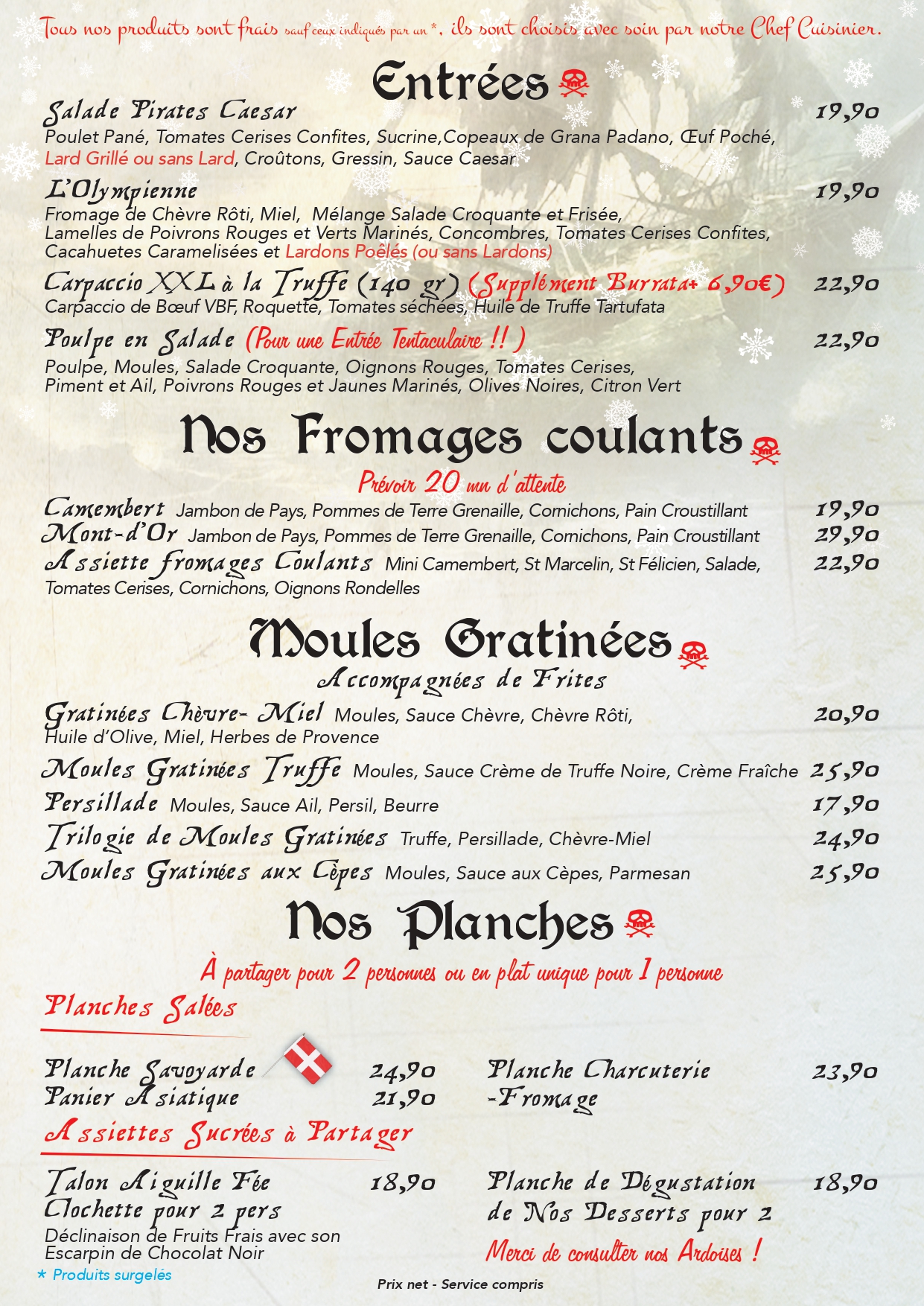 La carte hivernale de La Piraterie Découvrez la carte d’hiver et venez vous blottir dans le confort de notre navire ! Dégustez nos spécialités pour une saison délicieusement cocooning …